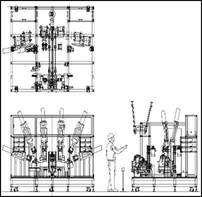 여러 개의 초음파 용착기를 하나의 프레임에 설치하여 여러 곳을 동시에 용착할 수 있습니다.