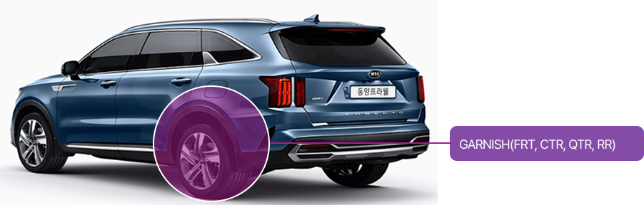 차량 측면부에 사용되는 부품을 만드는 제품을 소개합니다.